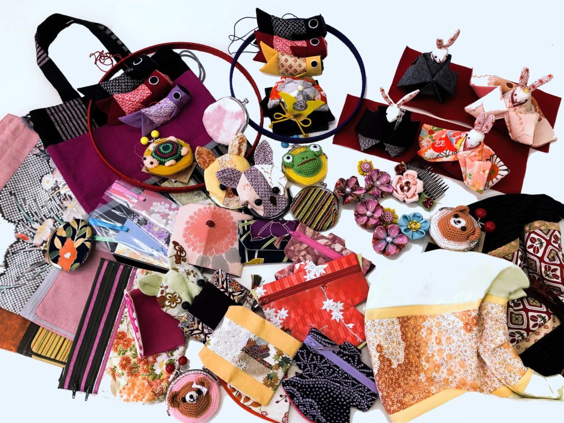 内職(ペン入れ・金具加工・封入・袋詰め)や着物をリメイクした和雑貨の作成、メンバーの方のオリジナル商品の販売、支えあい活動(買物・弁当お届け)、地域のお祭りを含めた月1回程度の販売等をしています。